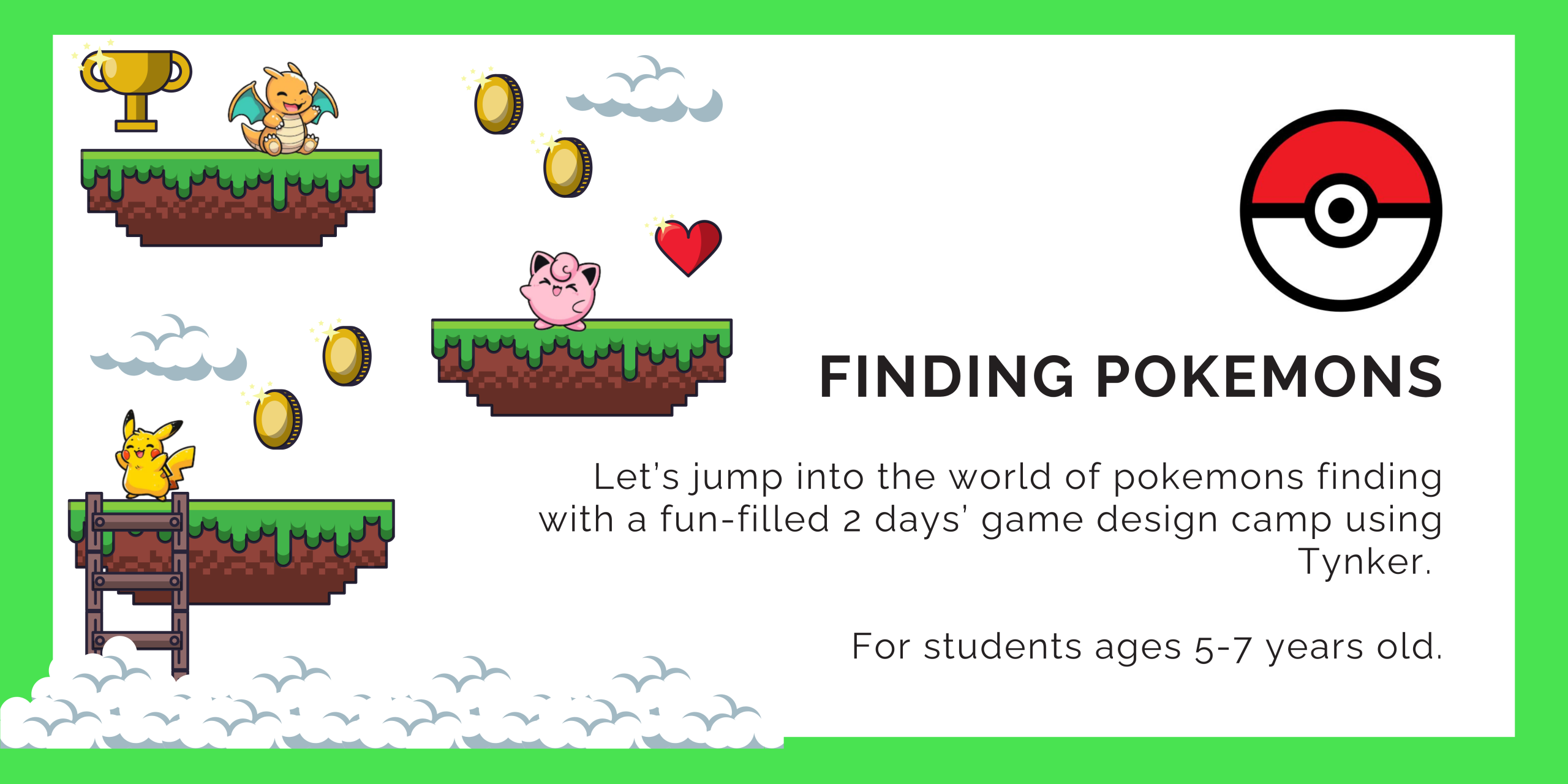 Calling all little trainers and junior game designers — join us for a thrilling 2-day holiday camp where kids build their very own platformer game on Tynker and hunt for Pokémon-style creatures!