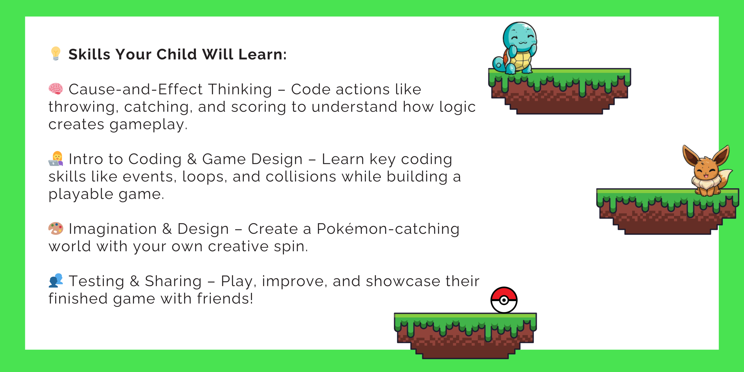 🎨 Imagination & Design – Create a Pokémon-catching world with your own creative spin.