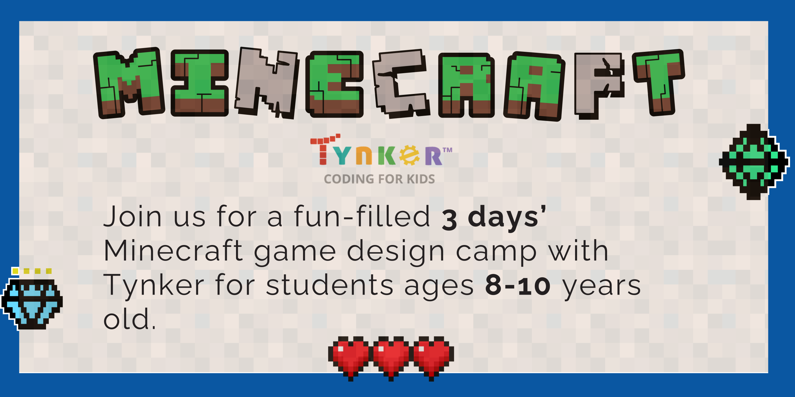 Calling all adventurers and budding game designers — join us for an action-packed 3-day holiday camp where kids craft their very own Minecraft-themed RPG using Tynker, complete with custom levels, enemies, and treasure quests!